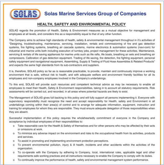 Our head office is at Dubai, United Arab Emirates. Solas Marine represents world renowned manufacturers in the field of safety & technology, who are known for their quality and reliability. We protect assets and property against fire hazards; alert and train people about dangers at workplaces and communities; provide clean breathing air to fire fighters and to workers in toxic places where they need it the most; help save lives at sea and land.